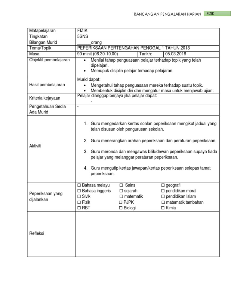 RPH semasa peperiksaan. Contoh RPH Semasa Peperiksaan. Bank Soalan 336 views.
