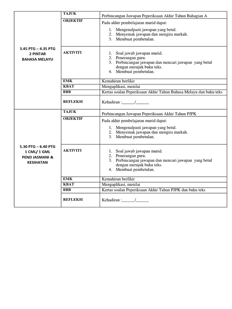 . RANCANGAN PENGAJARAN HARIAN PEPERIKSAAN Tarikh 1332018 Kelas 3 EMERALD Tempoh peperiksaan 1 JAM 15 MINIT. Bank Soalan Peperiksaan Akhir Tahun - Tahun 1 adalah antara himpunan-himpunan soalan yang berjaya kami sediakan untuk menjadi panduan dan rujukan kepada guru dan pelajar. In PdPR SKL 2020 on SK.